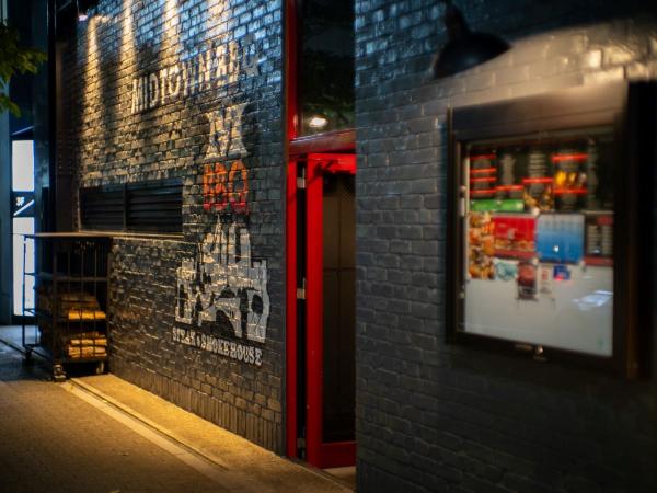 The American diner-style is complemented by not only hamburgers but an ample menu with 25 items like curry and nachos as well as 40 beers from around the world. Relish the tastes of the diner available in the day and at night.