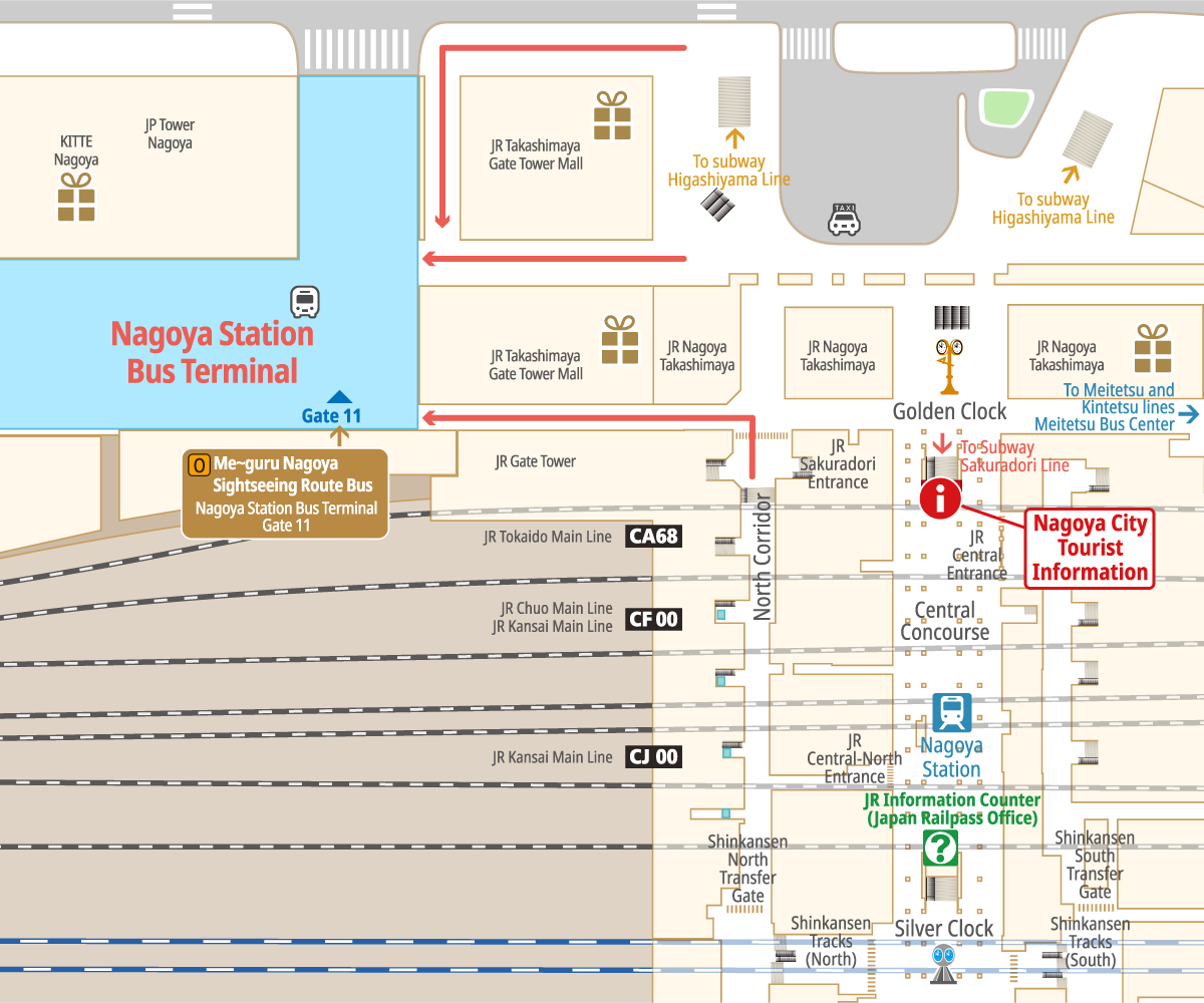 If getting on from a bus stop other than Nagoya Station, purchase a pass from the bus driver on the bus when boarding. Passes are also available from tourism agencies, hotels, and the Nagoya City Tourist Information Centers available at Oasis 21 iCenter in Sakae and Kanayama.