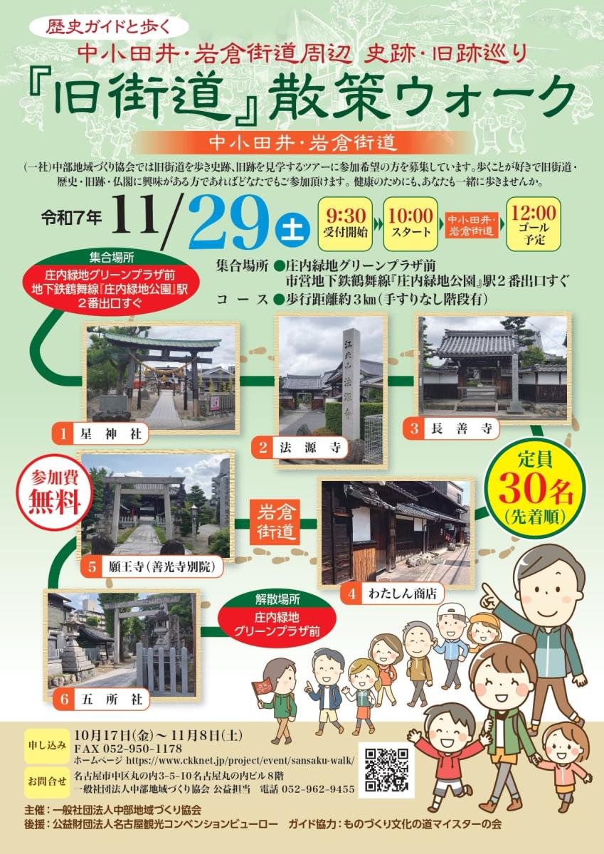 (一社)中部地域づくり協会では旧街道を歩き史跡、旧跡を見学するツアーに参加希望の方を募集しています。歩くことが好きで旧街道・歴史・旧跡・仏閣に興味がある方であればどなたでもご参加頂けます。 名古屋観光や健康のためにも、あなたも一緒に歩きませんか。