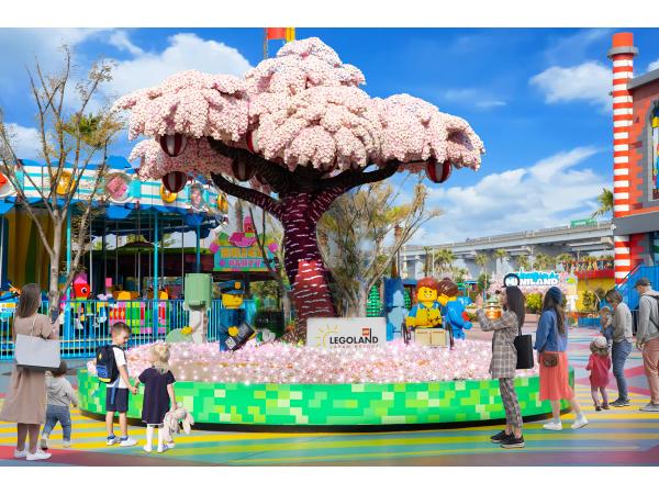 季節の思い出になる家族写真を撮影できる大きなレゴ® サクラツリーがお出迎えします。レゴランド® オリジナルキャラクター「バディ&レベッカ」と会えるベンチ型フォトスポットが初登場。