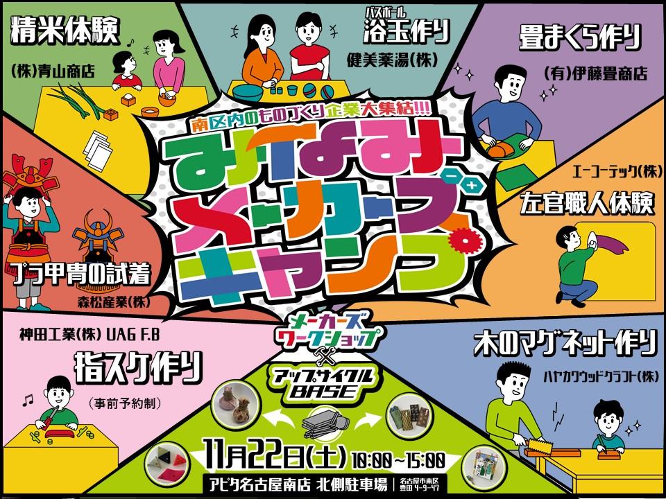 南区内ものづくり企業7社による各企業の技術を直に体験できる「メーカーズワークショップ」✖️南区内ものづくり企業提供の廃材を組み合わせてアップサイクルするワークショップ「アップサイクルBASE」の二本立てイベントです❗️