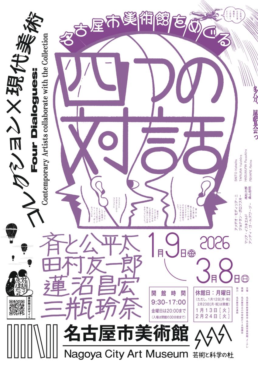 愛知にゆかりがあり、全国的・国際的な活躍を見せる斉と公平太・田村友一郎・蓮沼昌宏・三瓶玲奈の 4 人が、それぞれの視点・方法で名古屋市美術館のコレクションを解釈し、作家の新作を組み合わせて展示空間を構成します。