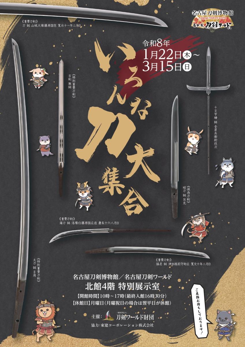名古屋刀剣博物館「名古屋刀剣ワールド」では、2026年1月22日(木)から3月15日(日)まで、企画展「いろんな刀大集合」を開催いたします。