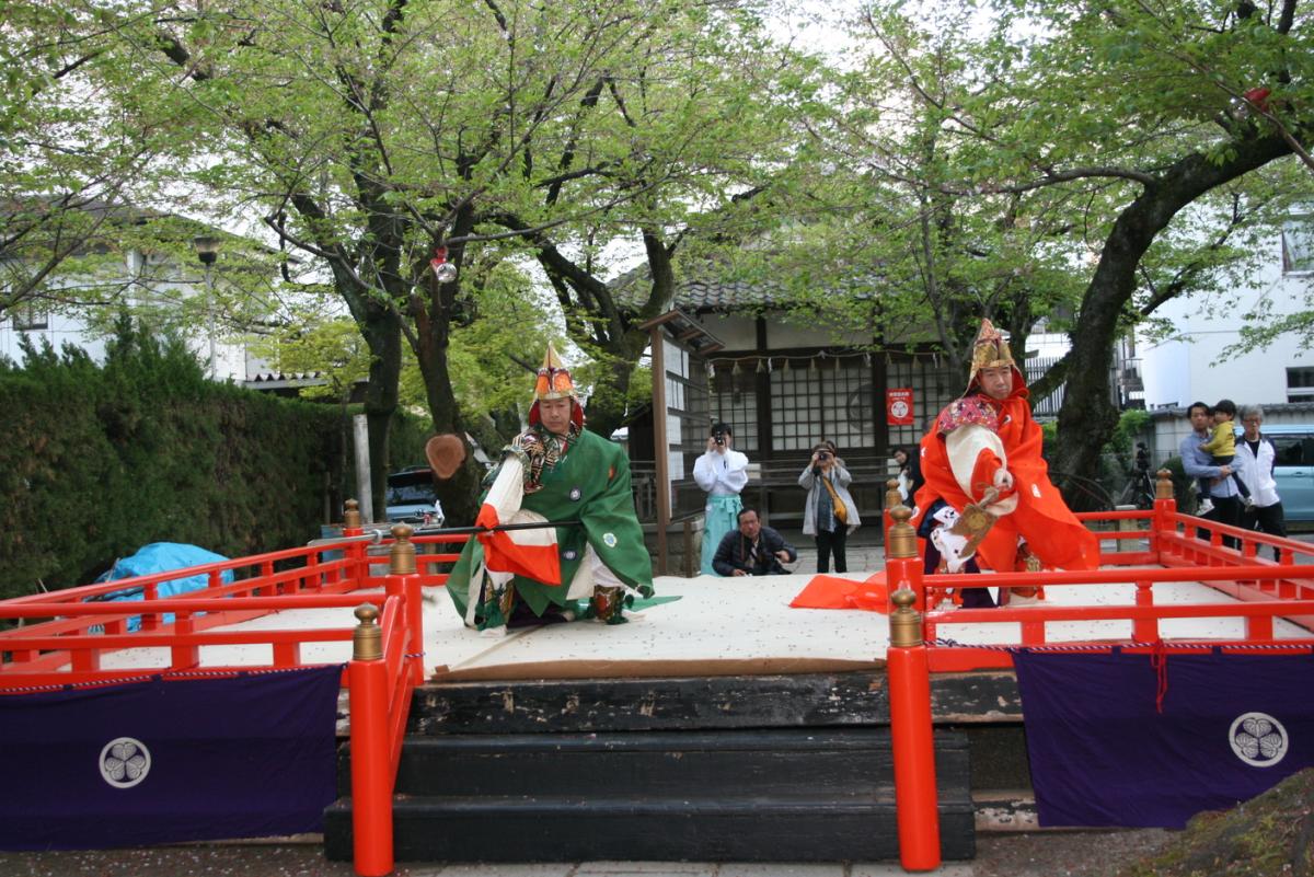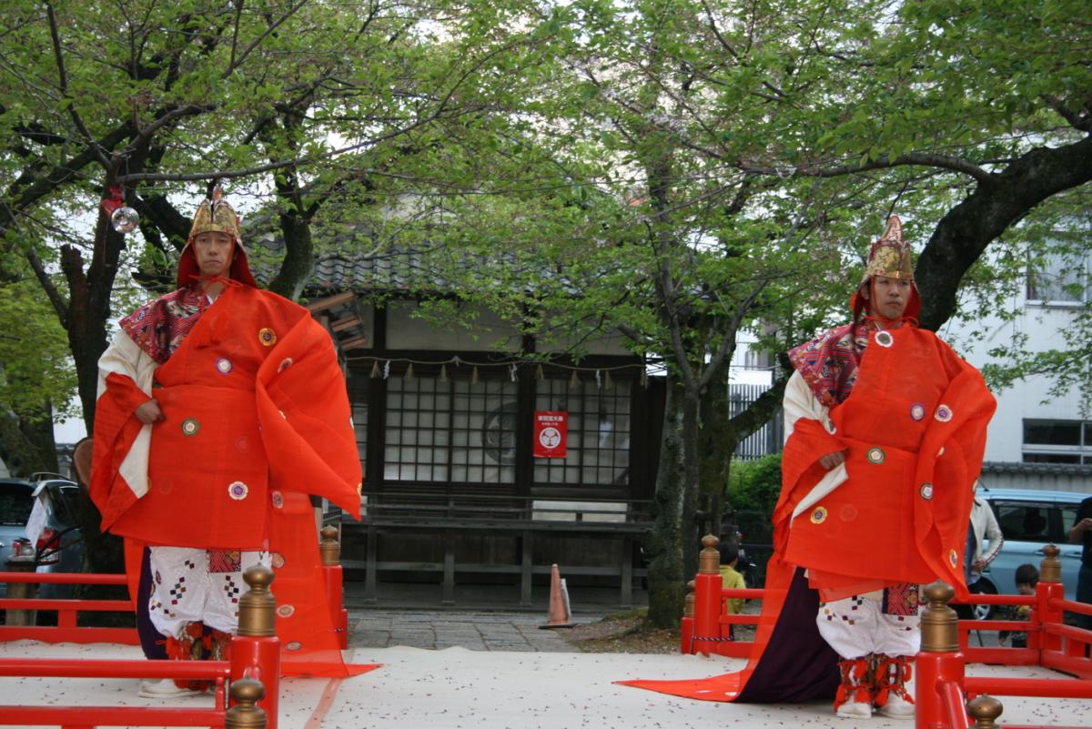 | 時間 | ■4月16日(神事)15:00~16:00 (舞楽奉納)17:00~19:00 備考:舞楽奉納のみ雨天中止 ■4月17日(神事)10:00~11:30 |