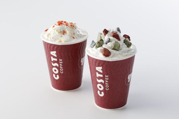 コスタコーヒーのホットチョコレートをベースに、マシュマロとフリーズドライのイチゴを飾り付けたホットドリンク。白と赤のカラーがクリスマス気分を盛り上げます。(コスタコーヒーのチョコレートを使用)
