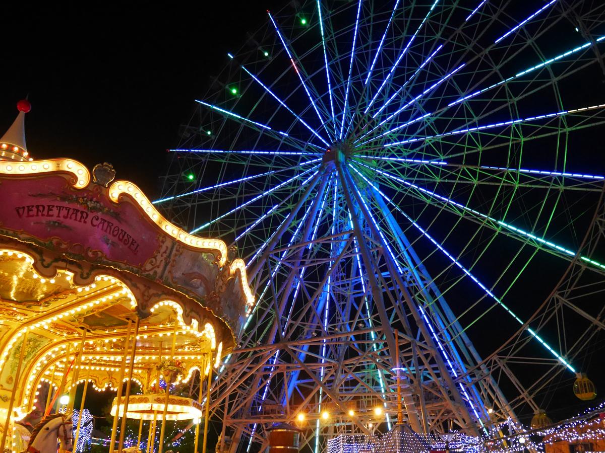 ライトアップした観覧車やメリーゴーランドをバックにインスタ映え写真を撮ろう!入口には星空をイメージした星空ドーム、 ハートやイルカなどのオブジェが園内を彩ります。