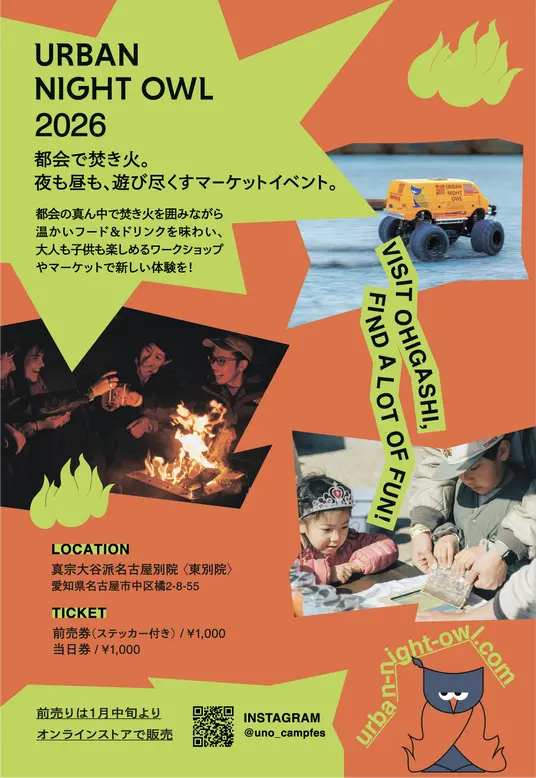 開催2日間を通して、名古屋の都心部でありながら類を見ない規模の焚き火台を設置します。とりわけ、21日(土)の夜には350年以上の歴史を誇る建築美と揺らめく火が融合した、幻想的な空間演出を実施。都会の喧騒を忘れさせる特別な時間を提供します。