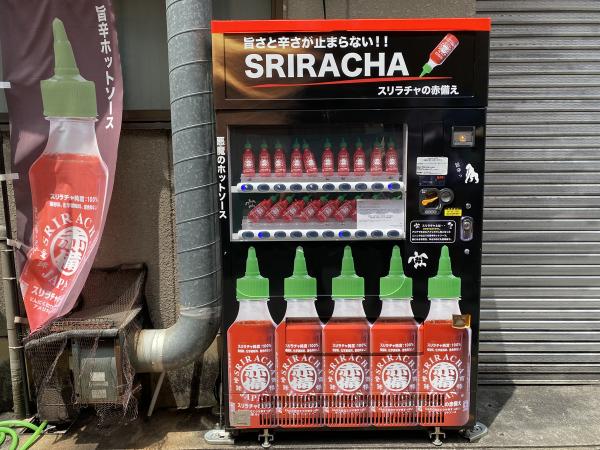 かけるだけで激ウマ!万能ホットソース「スリラチャの赤備え」自販機(大須 他)