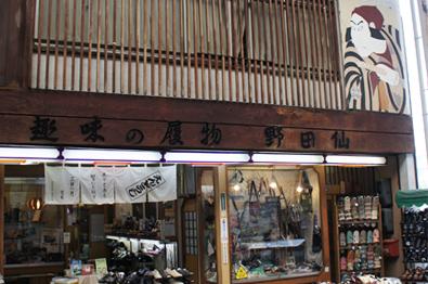 893(明治26)年創業の、下駄の鼻緒すげかえ職人「すげ師」のいる老舗履物店です。近年は、代々受け継がれてきた技と文化を、多くの人に触れて欲しいという思いをこめ、下駄を通しての交流活動を目指した新ブランド「野田仙久路里(のだせんくじり)」を立ち上げ、オリジナルデザインの下駄づくりを展開しています。また、円頓寺界隈を紹介するフリーマガジンの構成や、イベント、さらには映画制作も手がけており、円頓寺の仕掛け人というもう一つの顔も。