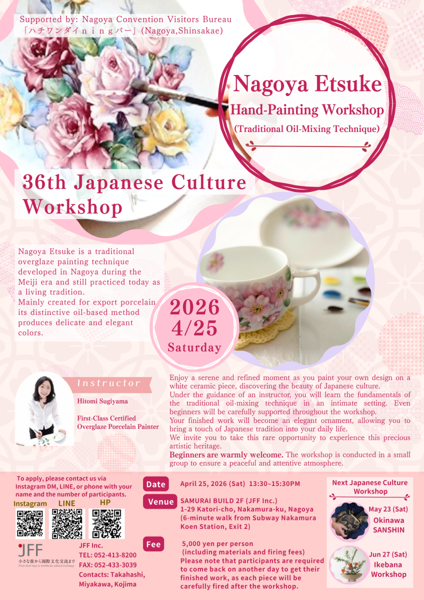 | 투어명 | The 36th Japanese Culture Experience Workshop ≪Nagoya Pottery Painting Workshop (Oil-Based Technique)≫ |