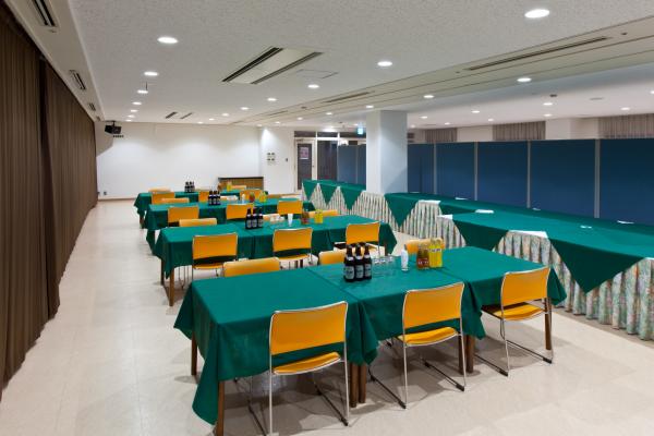 大小さまざまな研修室と、73の宿泊室があります(家族対応の和室有り)。研修室は最大210名まで対応可能です。懇親会などに利用できる大型ホールや談話室があります。本格的なトレーニングジムやサウナ付き大浴場も完備。また、200台収容可能な無料駐車場があります。