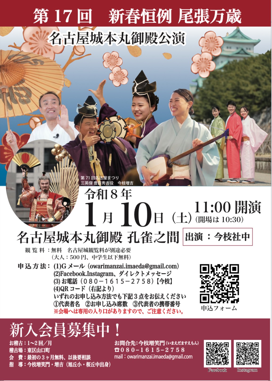 1月10日(土) 11:00~第17回名古屋城本丸御殿「尾張万歳」