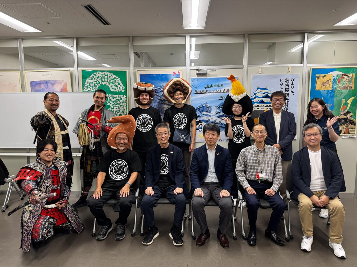 名古屋まつり会場行事に参加される“熊本市”の皆さまの表敬訪問を受けました。『熊本城おもてなし武将隊』の加藤清正公、細川忠興公、南条元清公もお越しくださいました!