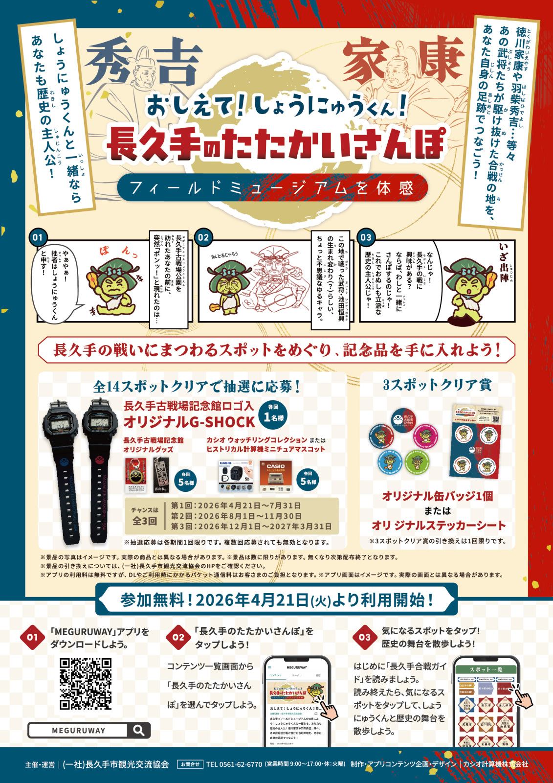 カシオ計算機が制作するデジタル観光ガイドアプリ「MEGURUWAY」で「長久手のたたかいさんぽ」配信中。