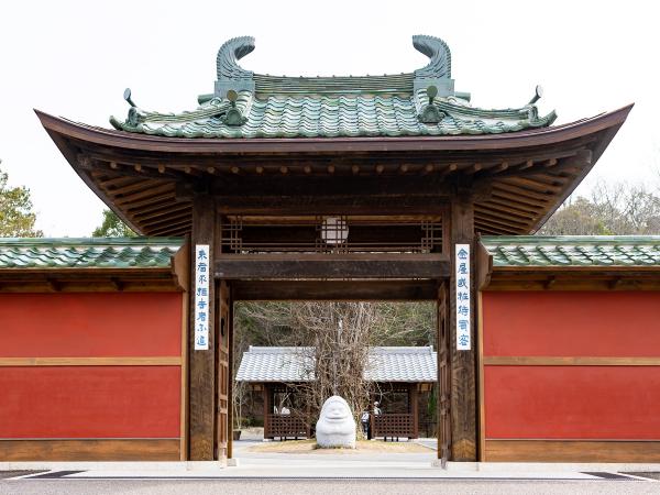 名古屋市内にあった「旧料亭稲本」の楼⾨を移設・復原したもので、『千と千尋の神隠し』の「油屋」を彷彿とさせます。