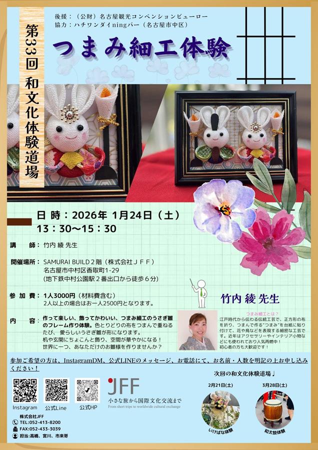 | ツアー名 | 第33回 和文化体験道場《つまみ細工体験》 |
