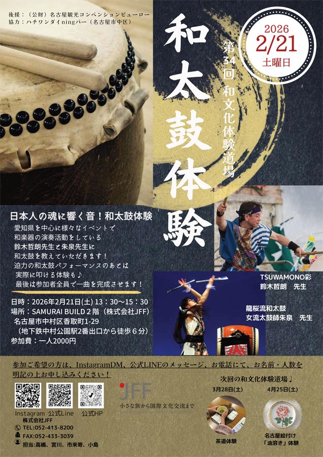 | ツアー名 | 第34回 和文化体験道場《和太鼓体験》 |