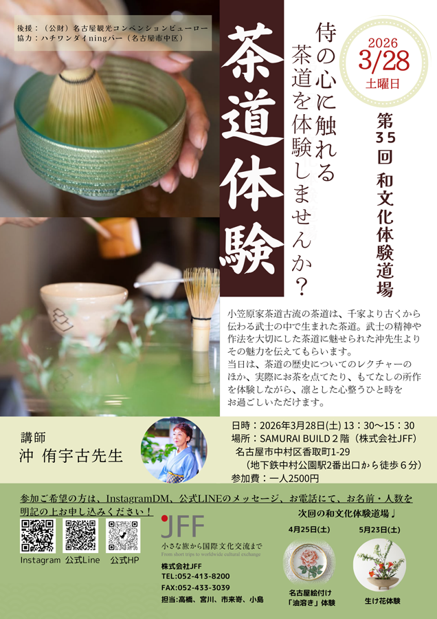 | ツアー名 | 第35回 和文化体験道場《茶道体験》 |