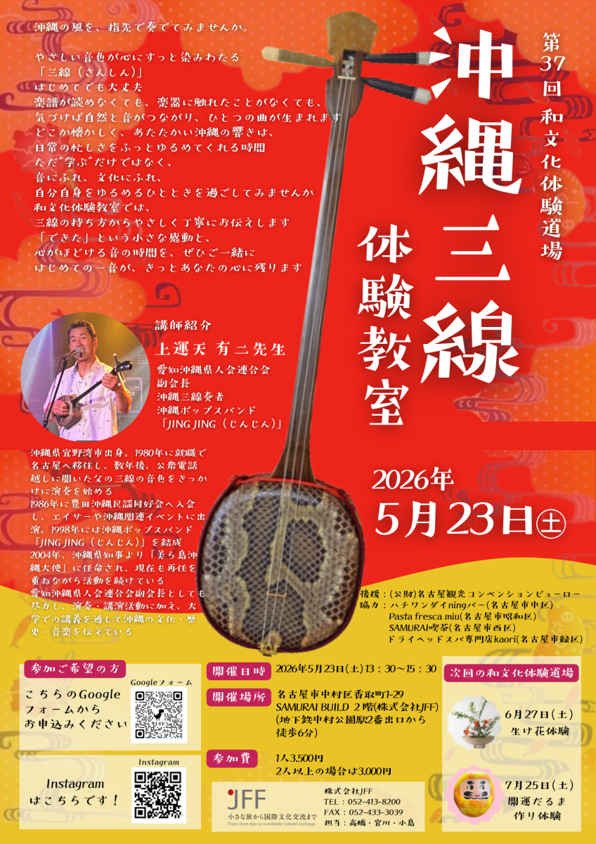 | ツアー名 | 第37回和文化体験道場 《三線体験》 |
